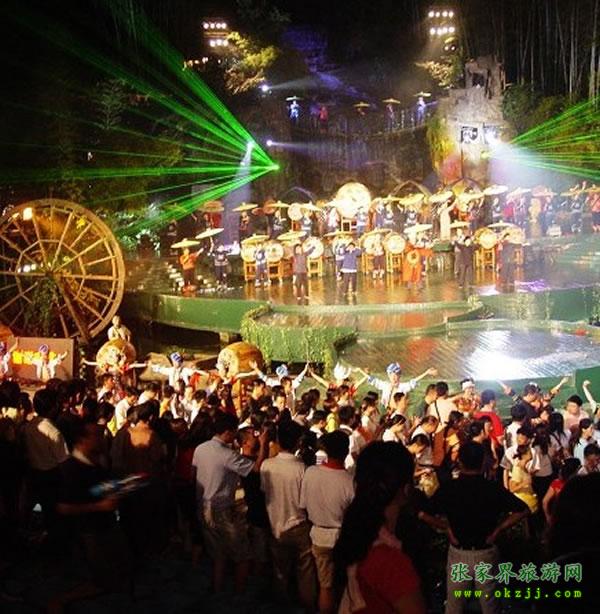 《武陵魂•梯瑪神歌》是一場記述土家族起源、演變、戰(zhàn)爭、生產(chǎn)生活等內(nèi)容的大型立體山水實(shí)景演出,揉合了音樂、舞蹈、文學(xué)等多種藝術(shù)形式,如幻如夢的舞美燈光,搖曳生姿的原生態(tài)歌舞……濃縮了土家族數(shù)千年的發(fā)展歷史,400多名演員以自然淳樸的表演充分的展示了土家的民族文化特征,給游客帶來了耳目一新的感受。一場視聽的饕餮盛宴,一曲驚天地、泣鬼神的曠世古歌,給人山水文化光影視聽的享受?!境銎罚?a class="insidelink" target="_blank" title="張家界">張家界梯瑪神歌文化傳播有限公司】