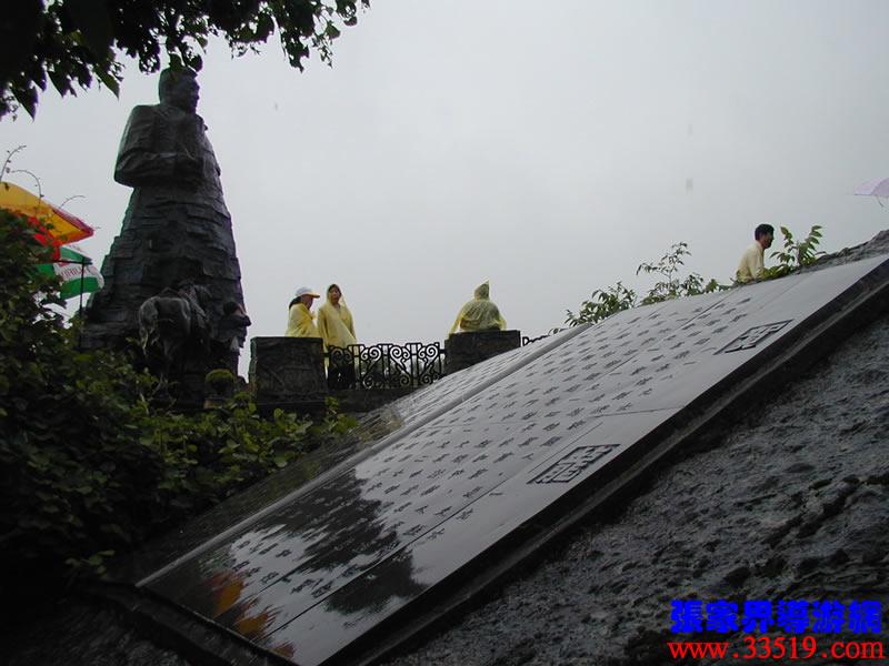賀龍銅像高6.5米,重9.3噸,是國(guó)內(nèi)迄今為止最大的一尊單人銅像。你看他身著軍大衣,那根曾伴他叱咤風(fēng)云的大煙斗捍在手中,那匹曾仰天長(zhǎng)嘯的大白馬依偎在膝旁,天風(fēng)吹衣,目光如炬,整個(gè)造型、色彩氣韻,就連軍大衣上的皺褶都和砂巖大峰林渾然一體,與這里的三千奇峰一道頂天立地,櫛雨沐風(fēng)。