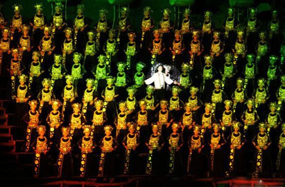 以此基礎(chǔ)進(jìn)行了藝術(shù)再創(chuàng)造,悲傷、歡樂、笑容、淚水交合成一個(gè)曲折動(dòng)人的故事。整場演出體現(xiàn)人物細(xì)節(jié),以個(gè)性化的敘事結(jié)構(gòu)給人以親近感和頭尾呼應(yīng)的完整感。汲取世界豐富的音樂文化元素和表現(xiàn)形式,輔之以現(xiàn)代高科技的舞臺(tái)特效技術(shù),對世界音樂歌舞劇的一次成功的創(chuàng)新,成為中國山水實(shí)景演出的劃時(shí)代巨獻(xiàn)。