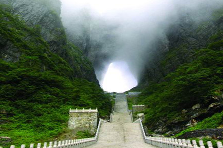 早上8:00長(zhǎng)沙火車站集合后,經(jīng)長(zhǎng)張高速往張家界市,赴天門山國(guó)家森林公園旅游,乘坐“世界第一長(zhǎng)高山客運(yùn)索道(全長(zhǎng)7455米,高差1279米)”, 體驗(yàn)騰云飛翔的刺激震撼,28分鐘到天門山頂:登張家界之巔云夢(mèng)仙頂,俯瞰張家界全景,體驗(yàn)凌空獨(dú)尊的豪情, 游覽東線碧野瑤臺(tái)景區(qū),觀賞奇妙美麗的盆景花園,游覽盆景石區(qū)、天門翻水、北俯視天門、靈泉、靈泉院,登云夢(mèng)仙頂,體驗(yàn)“云生腳下、奇峰盡覽、萬象目中”的豪邁感覺。游西線體驗(yàn)鬼谷棧道的驚心動(dòng)魄,在峭壁云端縱情尖叫。返凌霄臺(tái)欣賞城區(qū)風(fēng)光、領(lǐng)略山水長(zhǎng)卷的磅礴氣勢(shì),攀登 999 級(jí)臺(tái)階的上天梯,抵達(dá)天門洞底,感受造化神奇,盡情欣賞天門洞內(nèi)外的壯麗景色。至天門洞體驗(yàn)自然造化的神奇和震撼沖擊。乘觀光汽車體驗(yàn)99彎通天大道奇絕,沿途觀賞七級(jí)瀑布、金龜馱元寶、將軍峰、箭桿峰等景觀,天門山氣象獨(dú)特,門洞奇絕,植被豐富,歷史悠久,是歷史文化與佛道文化的神秘載體,是自然景觀與人文景觀的完美結(jié)合,故也是蜜月度假必游之地。