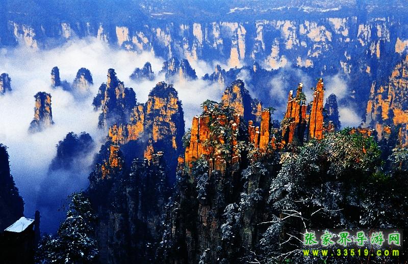 索溪峪風(fēng)景區(qū)索溪峪,西南緊連張家界,西北毗鄰天子山,面積一百四十七平方公里,有景點(diǎn)二百多處。索溪峪山、水、洞自成一體 ,奇峰起伏錯(cuò)成趣;水,泉清瀑美,千姿百態(tài);洞,幽深神秘,其妙無(wú)比。那恍若仙境的地下宮殿黃龍洞,天然浮雕羅列、充滿(mǎn)詩(shī)情畫(huà)意的十里畫(huà)廊,碧波蕩漾的寶峰湖,充滿(mǎn)傳奇色彩的百仗峽及太虛幻境般的西海云霧,一剛一柔、形態(tài)風(fēng)格迥異的鴛鴦瀑.... 無(wú)不令人流連忘返。遠(yuǎn)在明代中葉,就有人在巖壁題詩(shī)贊曰: “高峽百丈洞云深,要識(shí)桃源此處尋。”