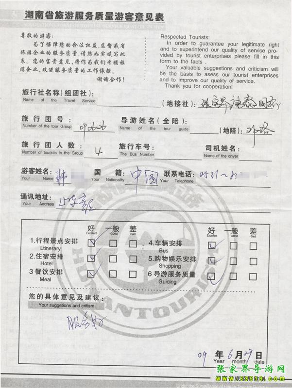- 游客夏先生為表揚(yáng)導(dǎo)游李姣姣寫來表揚(yáng)信致我張家界... [14811]