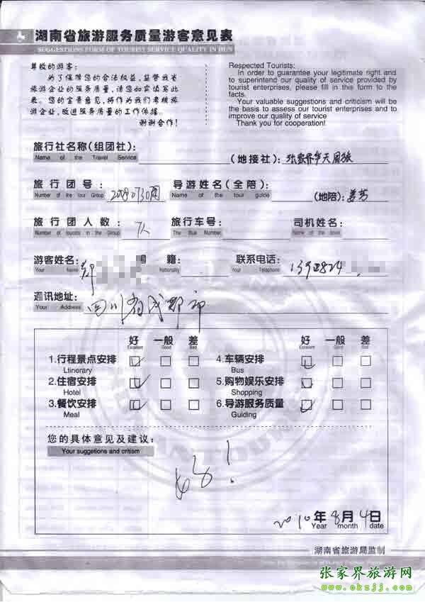 - 游客夏先生為表揚導(dǎo)游李姣姣寫來表揚信致我張家界... [14811]