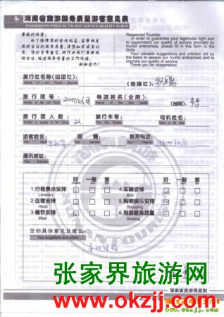 - 2011年10月26日張小姐一行18人旅游質(zhì)量反饋 [10482]