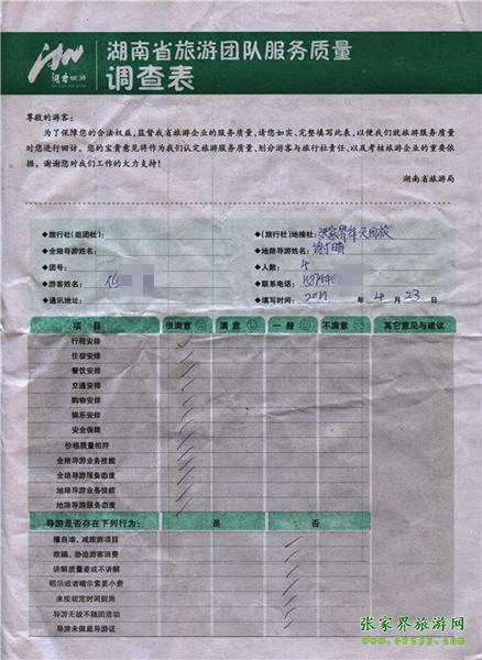 2011年4月23日任小姐一行4人旅游質(zhì)量反饋
