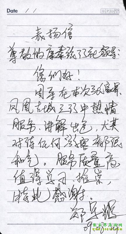 - 游客夏先生為表揚(yáng)導(dǎo)游李姣姣寫來表揚(yáng)信致我張家界... [14811]