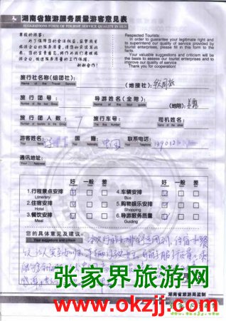 - 游客夏先生為表揚導(dǎo)游李姣姣寫來表揚信致我張家界... [14811]