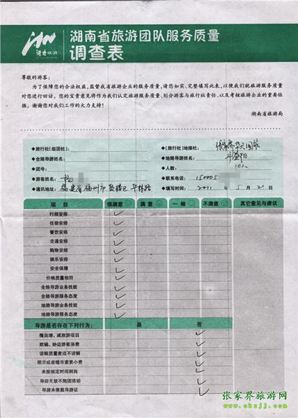 2011年5月21號楊小姐一行10人旅游質(zhì)量反饋