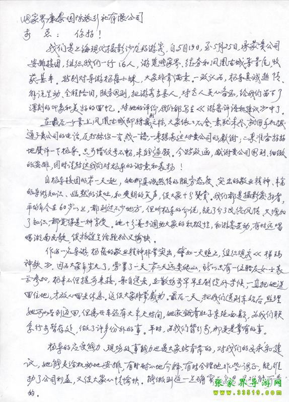 - 游客夏先生為表揚導游李姣姣寫來表揚信致我張家界... [14811]