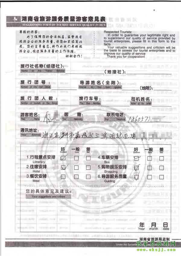 - 2011年10月26日張小姐一行18人旅游質(zhì)量反饋 [10482]