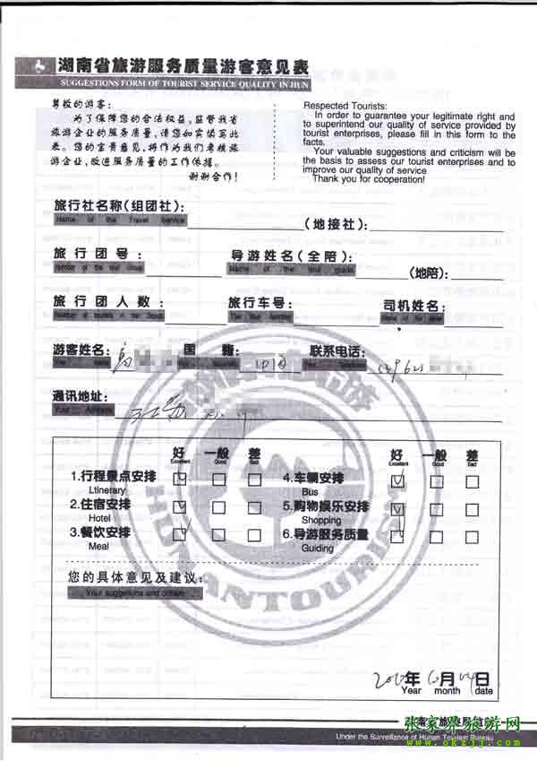 2010年10月4日高先生旅游質量反饋