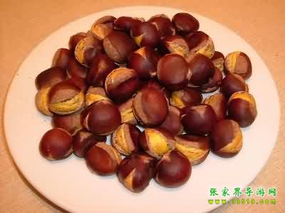 板栗與尖栗(俗名“漩栗”),山毛櫸科,是木本植物,主要含淀粉、糖等,在武陵源區(qū)各景區(qū)都有廣泛的分布。它們是多年生落葉喬木,一般樹(shù)高3至5米到10米左右。栗樹(shù)春末夏初開(kāi)花,夏天生長(zhǎng),秋天結(jié)實(shí)。果實(shí)成球形,外殼帶刺,里面栗子光滑成紫色,所以農(nóng)家有“娘被千針衫,兒穿紫龍袍”的謎語(yǔ)。板栗成熟以后,外殼便自然張開(kāi),栗子隨風(fēng)脫落。如在板栗林里撿栗子,倒是一大樂(lè)趣。“白露”過(guò)后,板栗大量成熟,滿(mǎn)樹(shù)的栗球都張開(kāi)了笑口,一遇到颯颯吹來(lái),栗子便唏唏唰唰唰隨風(fēng)脫落,滾進(jìn)山溝里或低洼處,如果運(yùn)氣好,可以撿到一窩一窩的板栗,有時(shí)可以撿幾十斤。