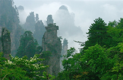 第二天 游覽世界峰林奇觀森林公園(248元已含,兩天有效)—天子山景區(qū):西海、天臺(tái)、仙女獻(xiàn)花、御筆峰、賀龍公園、臥龍嶺、十里畫廊,中途參觀百丈峽,住武陵源索溪峪